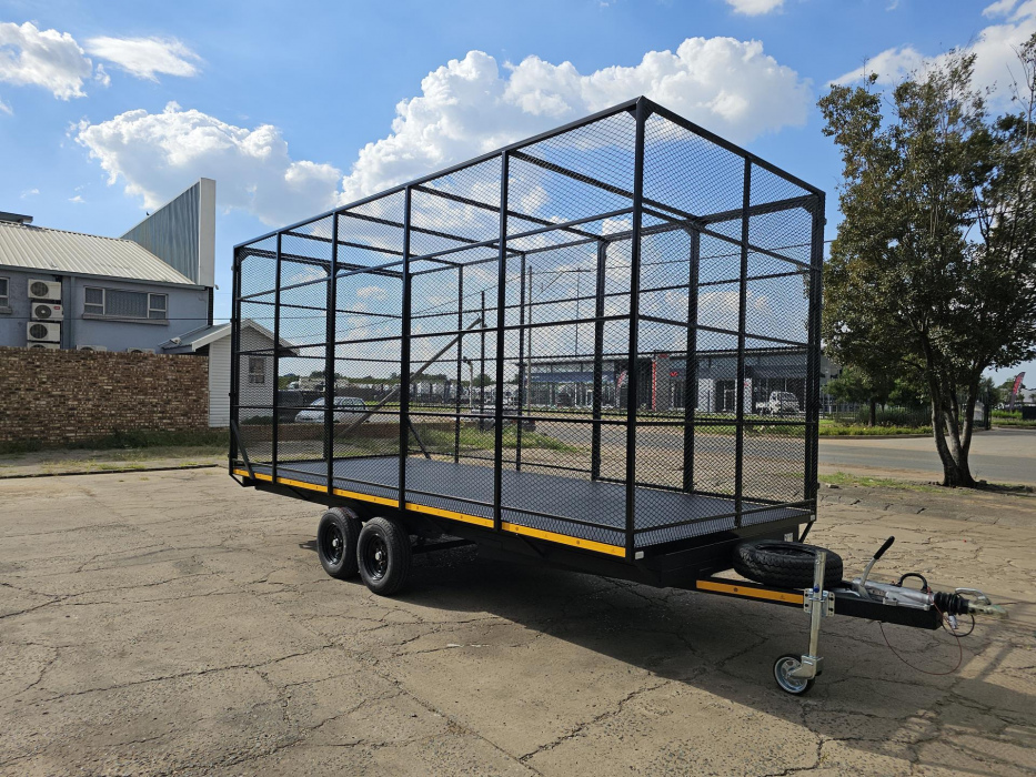 14" Wheels, 14" 195C, 10 Blade Leaf Springs, 2 Ton Coupler, 2.5 Ton Coupler, 2.7 Ton Coupler, 3 Ton Coupler, 2 Ton Load, 2.5 Ton Load, Double Axle, Braked , Brake, Mesh, Wire mesh, Flatex, 2 x 1500kg Axle, 2 x 1800kg Axle